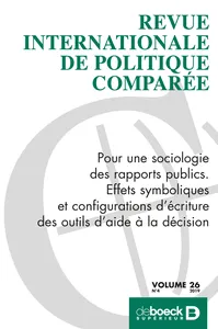 Toward a sociology of public reports. The symbolic effects and writing styles of support tools for decision-making Vol. 26, 2019/4 - pagesPages 7 to 31For a sociology of official reports. Symbolic effects and writing configurations of decision-making toolsBy Vincent Caby, Sébastien ChailleuxPages 33 to 53How institutions shape their reports: The cases of the French Economic, Social, and Environmental Council and the Court of AuditBy Thomas LépinayPages 55 to 81The bureaucratic genesis of a sectorial commonplace: Diplomatic competition and institutional support in the production of the first OECD report on health expenditure (1985)By Constantin BrissaudPages 83 to 107In the shadow of decisions: The multiple functions of study reports in the commercial delegation of expertise in urban policiesBy Nicolas BataillePages 109 to 138The effects of public reports on reforms of the criminal justice system in Canada and France. Views on penal knowledge within the political sphereBy Alexia VenouilPages 139 to 166The genesis of policy narratives from the perspective of the report: The case of police oversight in two Canadian provincesBy André Bernier