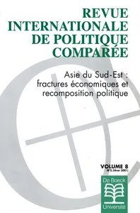 L'Asie du Sud Est Vol. 8, 2001/3 - pagesPages 363 à 365Avant proposPar Gérard HervouetPages 367 à 382Asie du sud-est : fractures économiques et recomposition politiquePar Gérard HervouetPages 383 à 394Mondialisation et souveraineté : une réévaluation de leur lienPar Amitav AcharyaPages 395 à 417L'Asean et les nouvelles règles du jeu.Par Sophie Boisseau du RocherPages 419 à 434La politique Thaïe : mondialisation, régionalisme et crise économiquePar John FunstonPages 435 à 459La “démocratie à l’Indonésienne ”: bilan critique d’une transition qui n ’en finit pas de commencerPar Romain BertrandPages 461 à 472La Malaisie et la mondialisation : crise et politique de l'ambivalencePar Richard StubbsPages 473 à 485Immaturité des politiques et survie face à la crise économique : les cas de l'Indonésie et de SingapourPar Chua Beng HuatPages 487 à 500Une analyse comparée de l'impact de la crise économique asiatique sur les politiques intérieures : le cas du CambodgePar Sorpong PeouPages 501 à 517Les Philippines : une démocratie hésitante dans le contexte internationalPar David WurfelPages 519 à 533Du miracle économique à la crise financière en Asie du Sud-est : érosion des acquis sociaux et retour de la pauvreté ?Par Rodolphe de Koninck, Terry G. McGeePages 543 à 553Notes bibliographiques