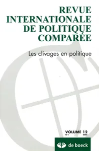 Les clivages en politique Vol. 12, 2005/1 - pagesPages 7 à 8IntroductionPar Yves Déloye, Julian Thomas HottingerPages 9 à 34La formations des clivagesPar Stefano BartoliniPages 35 à 45Pertinence, déplacement et renouvellement des analyses en termes de clivage en FrancePar Florence HaegelPages 47 à 76L'évolution de la territorialité des clivages en Europe: une étude comparative depsuis la moitié du XIXe sièclePar Daniele CaramaniPages 77 à 94L'Europe et les partis politiques nationaux : les leçons d'un “non-clivage”Par Robert HarmsenPages 95 à 104Essai de politique maritime comparée : évolution récente de la Chine et de l'IndePar Danièle Auffray