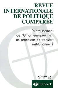 L'élargissement de l'Union européenne : un processus de transfert institutionnel ? Vol. 13, 2006/2 - pagesPages 177 à 178L'élargissement de l'Union européenne : un processus de transfert institutionnel ?Par Sabine Saurugger, Yves SurelPages 179 à 211L'européanisation comme processus de transfert de politique publiquePar Sabine Saurugger, Yves SurelPages 213 à 238Transfert institutionnel et européanisation. Une comparaison des cas est-allemand et est-européensPar François BafoilPages 239 à 257La naissance d'une politique publique « européanisée » : le secteur de l'asile en Hongrie et en République tchèquePar Laure NeumayerPages 259 à 278Les transferts institutionnels à l'usage des politiques d'égalité hommes-femmes dans les nouveaux États membres de l'Union européenne. De l'invention d'un domaine des politiques publiques à son investissement par les acteursPar Maxime ForestPages 279 à 300Transfert institutionnel et transformation postcommuniste. Les modalités de la réforme administrative dans les communes est-allemandesPar Valérie Lozac’h