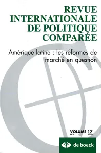 Amérique latine : les réformes de marché en question Vol. 17, 2010/3 - pagesPages 7 à 22Amérique latine : les réformes de marché en questionPar Pierre-Louis Mayaux, Yves SurelPages 23 à 55Les politiques sociales à l'épreuve des réformes de marchéPar Bruno LautierPages 57 à 72Les politiques d'équipement au Mexique : Privatisation, décentralisation et reconfiguration du pouvoir politique en milieu ruralPar Julie DevineauPages 73 à 87Les concessions routières au Chili. Un changement sélectifPar Sabah ZrariPages 89 à 109Du clientélisme au contrat : stratégies de changement et pérennité des privatisations dans les services d'eau des villes latino-américainesPar Pierre-Louis MayauxPages 111 à 126Rente pétrolière et politique budgétaire en ÉquateurPar Andrés Mejía Acosta, Vicente AlbornozPages 127 à 142Réformes néolibérales et tensions sur les ressources dans la décentralisation au Pérou et au MexiquePar Marguerite BeyPages 143 à 155Bureaucratie publique et réforme managériale. La réforme administrative brésilienne de 1995Par Luiz Carlos Bresser-PereiraPages 157 à 174La ressource identitaire territoriale des partenariats publics-privés et des clusters : usages et rôles en Bavière, en Bretagne et dans le Nord-Est de l'Angleterre depuis 1980Par Sabine MenuPages 175 à 193La magnitude, facteur décisif ? Les élections européennes de 2004 en France et les effets du changement de mode de scrutinPar Bernard Dolez, Annie LaurentPages 195 à 198Notes bibliographiquesPar Marc Smyrl