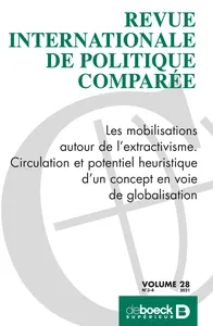 Les mobilisations autour de l’extractivisme Circulation et potentiel heuristique d’un concept en voie de globalisationVol. 28, 2021/3 - pagesPages 7 à 29Les mobilisations autour de l’extractivisme. Circulation et potentiel heuristique d’un concept en voie de globalisationPar Mathilde Allain, Antoine MailletPages 31 à 62Référendums citoyens contre les projets extractifs en Colombie : la construction de coalitions multisectorielles pour la défense du territoire et des ressourcesPar Julie MassalPages 63 à 91The Aratirí open-pit mine project in Uruguay: politics of time, local and national environmental resistance to an extractivist government priorityPar Germán Bidegain, Martín FreigedoPages 93 à 124The prevalence of the State as a target of diversified transnational advocacy strategies: compensating extractive impacts in Peru and ColombiaPar Ana Carolina Gonzalez Espinosa, Sarita Ruiz Morato, Ximena WarnaarsPages 125 à 153Extraire la ressource, s’extraire du conflit. Réguler la surexploitation des mines et des eaux souterraines au MarocPar Pierre-Louis Mayaux, Max RousseauPages 155 à 184L’extraction en France est-elle un extractivisme ? L’exemple des conflits sur les hydrocarbures non conventionnelsPar Sébastien Chailleux